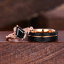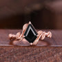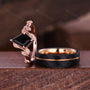 Vine Leaf Black Onyx Couples Ring Rose Gold Matching Ring Set His and Hers Wedding Band Promise Ring For Men For Women Kite Cut Ring