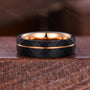 ►His ring is Rose Gold and Black Tungsten Carbide.