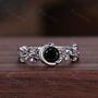 Vine Leaf Style Black Onyx Couples Ring Vintage Silver Matching Ring Set Twig Leaf His and Hers Wedding Band Mens Onyx Ring Black Gem Ring