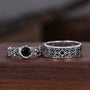 Here we have a Vine Leaf Style Black Onyx Couples Ring Vintage Silver Matching Ring Set Twig Leaf His and Hers Wedding Band Mens Onyx Ring Black Gem Ring