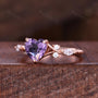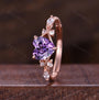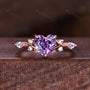 Vintage Amethyst Engagement Ring Rose Gold Heart Shaped Bridal Ring Unique Moissanite Twisted Band Ring Romantic Gift For Her