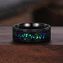 ►His ring is Black Tungsten Carbide with blue opal.