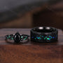 Vintage Black Onyx Couples Ring Black Gold Matching Ring Set His And Hers Wedding Band Mens Hammered Opal Ring Promise Ring Natural Gemstone