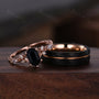 Vintage Black Onyx Couples Ring Rose Gold Matching Ring Set His and Hers Wedding Band Promise Ring For Men For Women Natural Black Gemstone