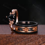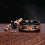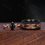 Vintage Black Onyx Couples Ring Set His and Hers Wedding Band Mens Gold Leaf Ring Rose Gold Matching Couples Promise Ring Nature Inspired