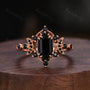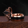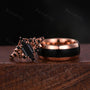 Vintage Black Onyx Couples Ring Set Rose Gold His and Hers Wedding Band Comfort Fit Mens Tungsten Band Antique Crescent Moon Promise Ring