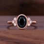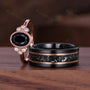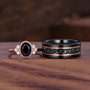 Vintage Black Onyx Couples Ring Set, Rose Gold His and Hers Wedding Bands, 8mm Men's Meteorite Ring Unique Promise Rings