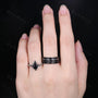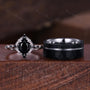 Vintage Black Onyx Couples Ring Vintage Matching Ring Set His And Hers Wedding Band Promise Ring For Men For Women Pear Natural Black Gem