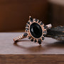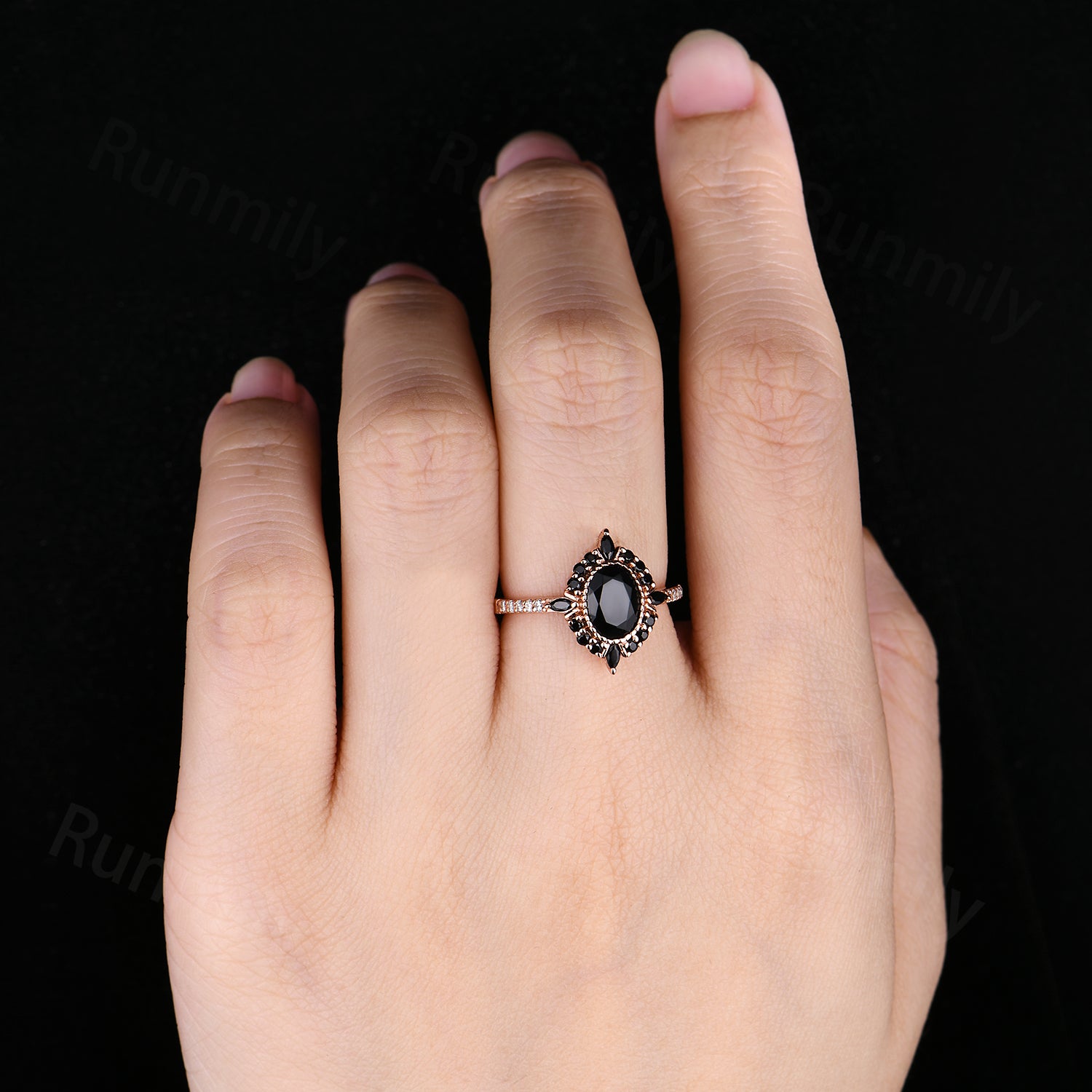 Vintage Black Onyx Engagement Ring Antique Oval Gem Bridal Rose Gold Promise Ring