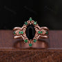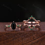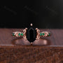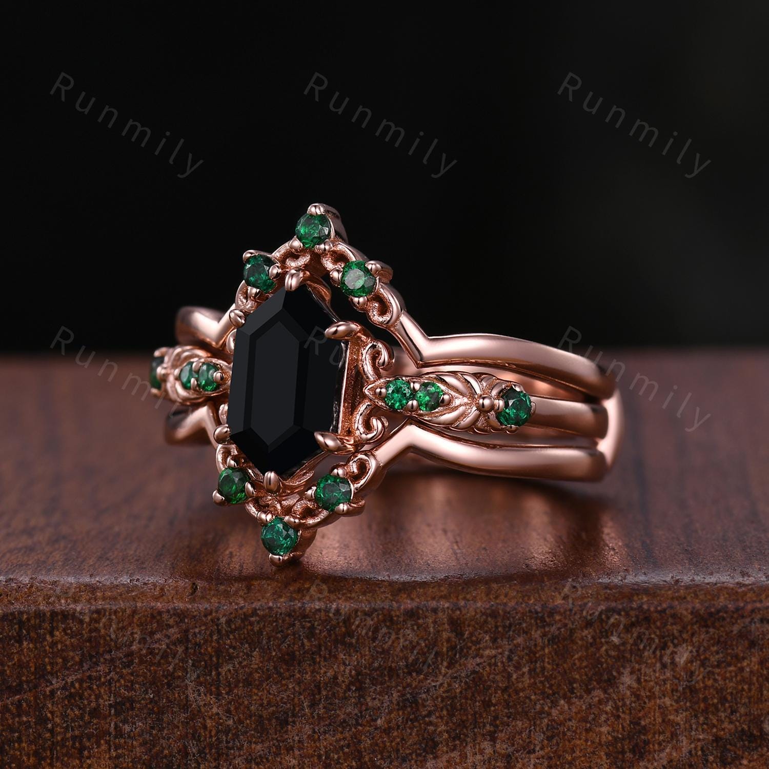Vintage Black Onyx Engagement Ring Set Hexagon cut Engagement Ring Unique Art Deco Emerald Stacking Matching Band Bridal Promise Set