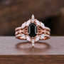 Vintage Black Onyx Engagement Ring Set Women Rose Gold Hexagon Cut Wedding Ring Double Curved Moissanite Enhancer Stacking Bridal Ring