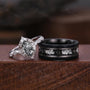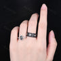 Vintage Black Rutilated Quartz Couple Ring White Gold Matching Ring Set His and Hers Wedding Band Unique Promise Ring For Men For Women Gift