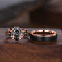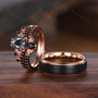 Vintage Black Rutilated Quartz Couples Ring Rose Gold Matching Ring Set His and Hers Wedding Band Promise Ring For Men For Women Natural Gem