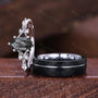 Vintage Black Rutilated Quartz Couples Ring White Gold Matching Ring Set His and Hers Wedding Band Promise Ring For Men For Women Black Gem