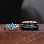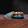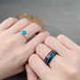 Vintage Blue Opal Couples Ring Rose Gold Matching Ring Set His and Hers Wedding Band Mens Opal Ring October Birthstone Couple Promise Rings