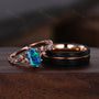 Vintage Blue Opal Couples Ring Rose Gold Matching Ring Set His and Hers Wedding Band Promise Ring For Men For Women Blue Fire Opal Ring