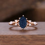 Vintage Blue Sandstone Engagement Ring Set Women Rose Gold Hexagon Wedding Ring Double Curved Moissanite Enhancer Stacking Bridal Ring