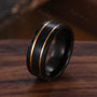 ►His ring is Yellow Gold and Black Tungsten Carbide with black sandstone inlay.
