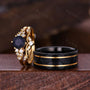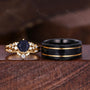 Vintage Blue Sandstone Engagement Ring Set Yellow Gold Couples Ring His and Hers Galaxy Sandstone Wedding Band Anniversary Gift for Couple