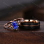 Vintage Blue Sapphire Couples Ring Rose Gold Matching Ring Set His and Hers Wedding Band Promise Ring For Men For Women September Birthstone