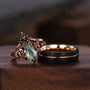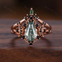 Vintage Coffin cut Moss Agate Couples Ring Rose Gold Matching Ring Set His and Hers Wedding Band Promise Ring For Men For Women Black Ring