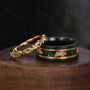 Vintage Emerald Couples Band Yellow Gold Matching Ring Set His and Hers Wedding Band Mens Green Opal Ring Anniversary Gift For Men For Women
