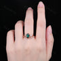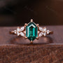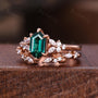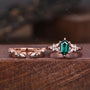 Vintage Emerald Engagement Ring Set Unique Open Gap Diamond Wedding Band Rose Gold Cluster Shank Leaf Bridal Set Anniversary Ring Gift