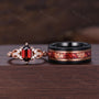 Vintage Garnet Couples Ring, Retro Hexagon Ring, Rose Gold Matching Ring Set, Red Garnet His And Hers Wedding Ring, Couple Promise Ring