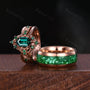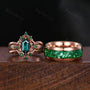 Vintage Green Emerald Couple Ring Set Unique Double Curved Stacking Band Rose Gold His and Hers Wedding Ring Couples Emerald Promise Ring