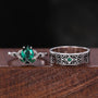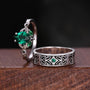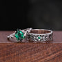 Vintage Green Emerald Couples Ring Silver Ring Nature Inspired His and Hers Wedding Band Leaf Design Ring For Couples Anniversary Rings