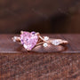 Vintage heart shape pink diamond ring vintage rose gold engagement ring unique twig twisted moissanite wedding ring bridal promise ring