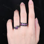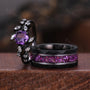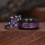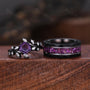 Vintage Hexagon Amethyst Couple Ring Set Gothic Black Gold His and Hers Wedding Band Mens Crushed Amethyst Ring February Birthstone Rings