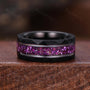 ?His ring is Black Gold Tungsten Carbide with crushed amethyst inlay