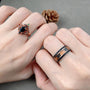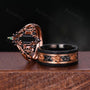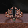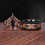 Vintage Hexagon Cut Black Onyx Couples Ring Rose Gold His And Hers Wedding Band Promise Ring For Men For Women Crescent Moon Bridal Ring Set