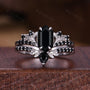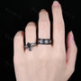Vintage Hexagon cut Black Onyx Couples Ring Sterling Silver Matching Ring Set His and Hers Wedding Band Couple Black Gemstone Promise Ring