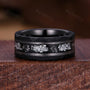 ►His ring is Black Gold Tungsten Carbide with meteorite and silver foil inlay.