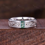 Vintage Mens Moss Agate Band Mens 5mm Wedding Band Baguette Cut Moss Agate Band Mens Wave Leaf Stacking Matching Band Gift For Husband