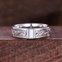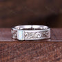 Vintage Mens White Opal Band Mens 5mm Wedding Band Baguette Cut Opal Band Mens Wave Leaf Stacking Matching Band October Gift For Husband