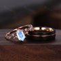 Vintage Moonstone Couples Ring Rose Gold Matching Ring Set His and Hers Wedding Band Promise Ring For Men For Women Rainbow Moonstone Ring