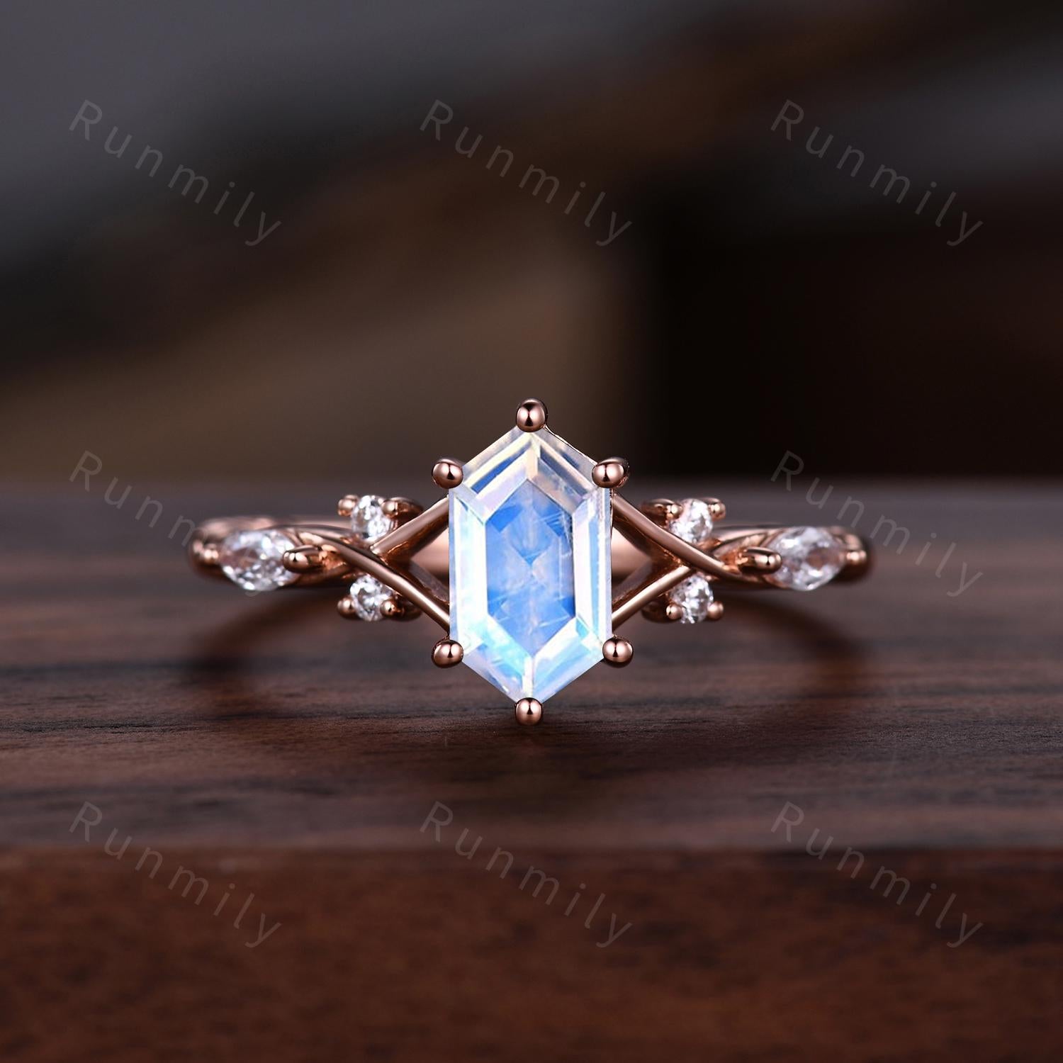 ►Center stone: 5x9mm hexagon cut natural Moonstone