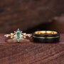 Vintage Moss Agate Couples Ring Yellow Gold Matching Ring Set His and Her Wedding Band Promise Rings For Men For Women Natural Moss Agate