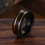 ►His ring is Yellow Gold and Black Tungsten Carbide with black sandstone inlay.