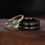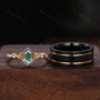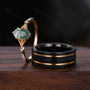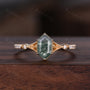 Vintage Moss Agate Couples Ring Yellow Gold Matching Ring Set His And Hers Wedding Band Mens Black Sandstone Ring Promise Ring Hexagon Cut