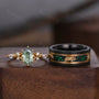 Vintage Moss Agate Couples Ring Yellow Gold Matching Ring Set His and Hers Wedding Band Mens Opal Ring Promise Ring For Men For Women