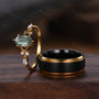 Vintage Moss Agate Couples Ring Yellow Gold Matching Ring Set His and Hers Wedding Band Promise Ring For Men For Women Natural Agate Gem
