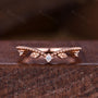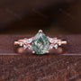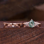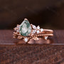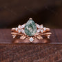Vintage Moss Agate Engagement ring set Rose Gold Leaf Stacking Band Unique Teardrop Ring Curved Matching Band Diamond Bridal Promise Rings