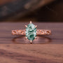 Vintage Moss Agate Ring Hexagon Cut Bridal Ring Antique Filigree Women's Ring Art Deco Natural Moss Agate Engagement Promise Ring Rose Gold