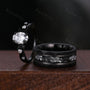 ►His ring is Black Gold Tungsten Carbide with meteorite and silver foil inlay.