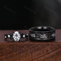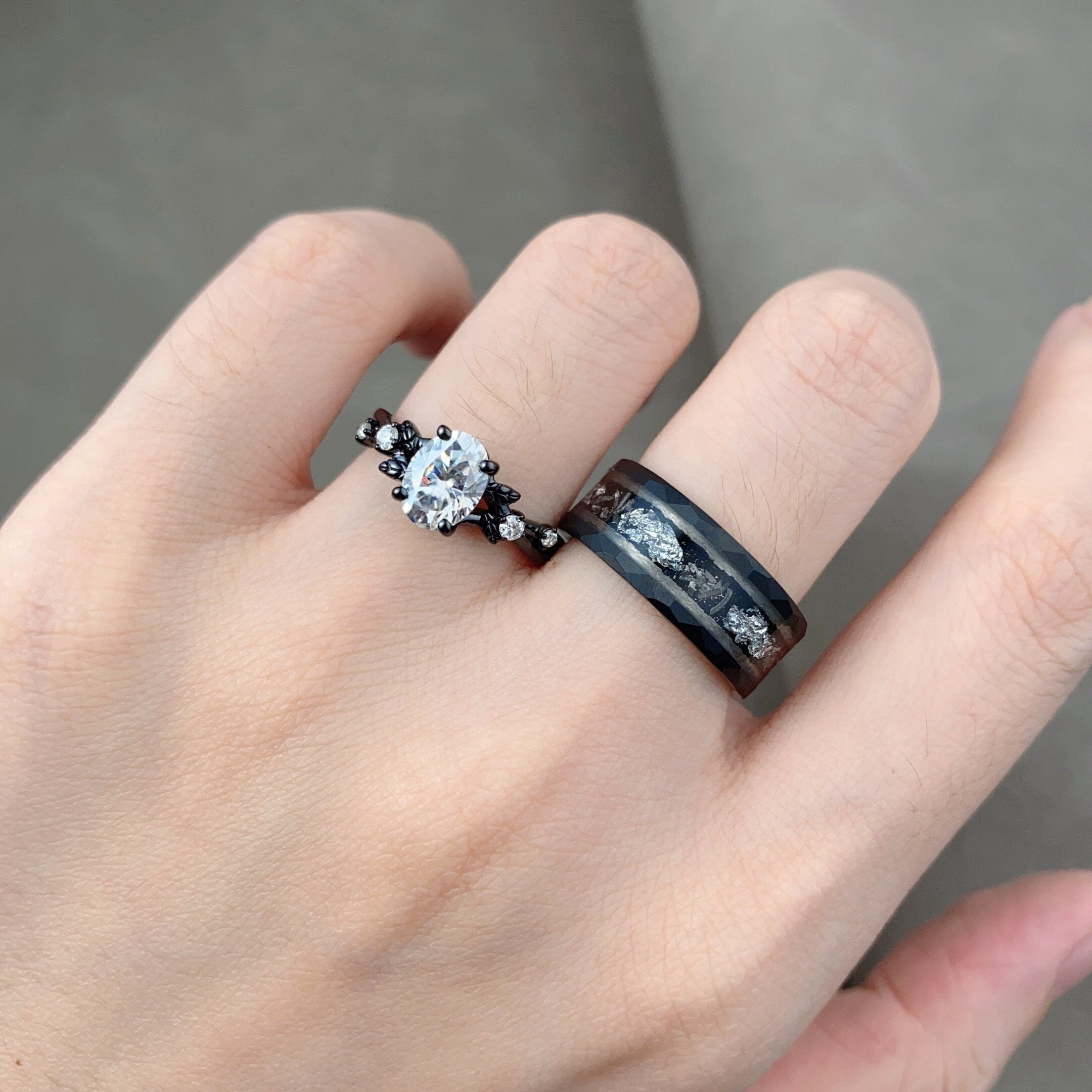 Vintage Oval Moissanite Couple Ring Set Gothic Black Gold Rings Mens Meteorite Tungsten Ring His and Hers Wedding Band Couples Promise Ring