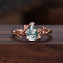 Vintage twig leaf moss agate ring women unique nature inspired engagement ring rose gold wedding ring green agate ring bridal promise gift